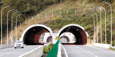 达陕高速张家湾隧道 张家湾1号连拱隧道长230米,张家湾2号连拱隧道长229米,2012年4月建成通车。